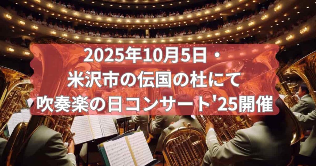 2025年10月5日(日)に「おいたまの秋空に響かせたい!第20回吹奏楽の日コンサート'25」が開催されます。入場無料。開演は9:45(庭奏10:00)終演予定は16:00会場は山形県...