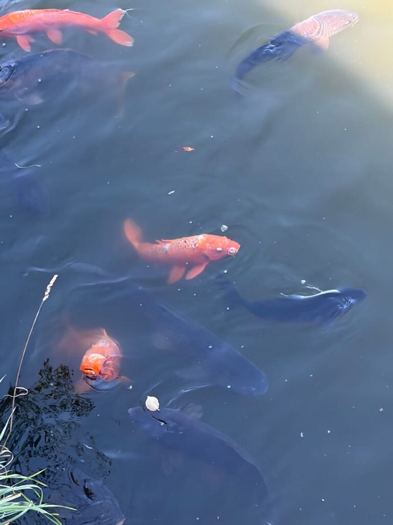 今日もいました。上杉神社の鳩と鯉。鳩も人慣れしてます。