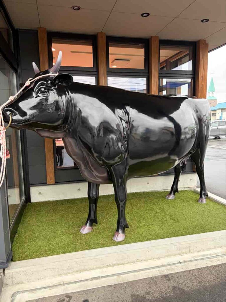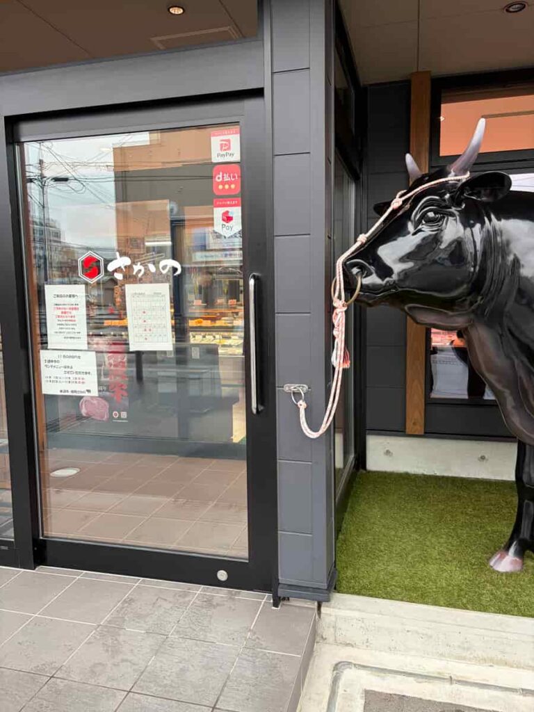 米沢牛専門店さかの さんのお店の前には大きな牛の置物があります。