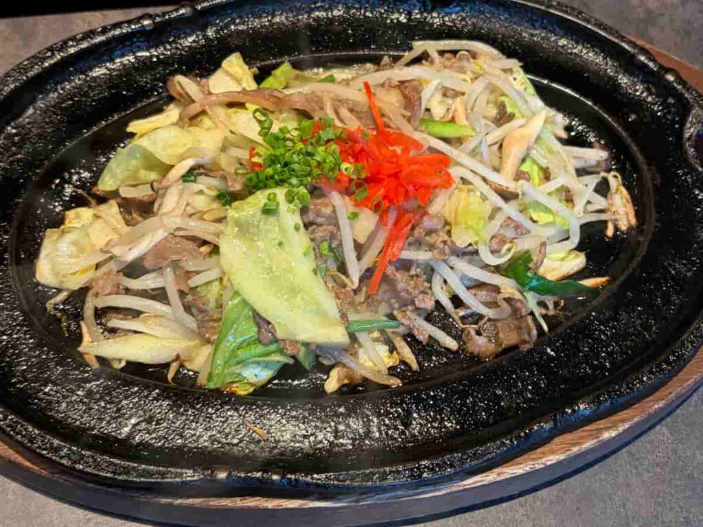 鉄板の上にのった米沢牛鉄板焼きランチです。
