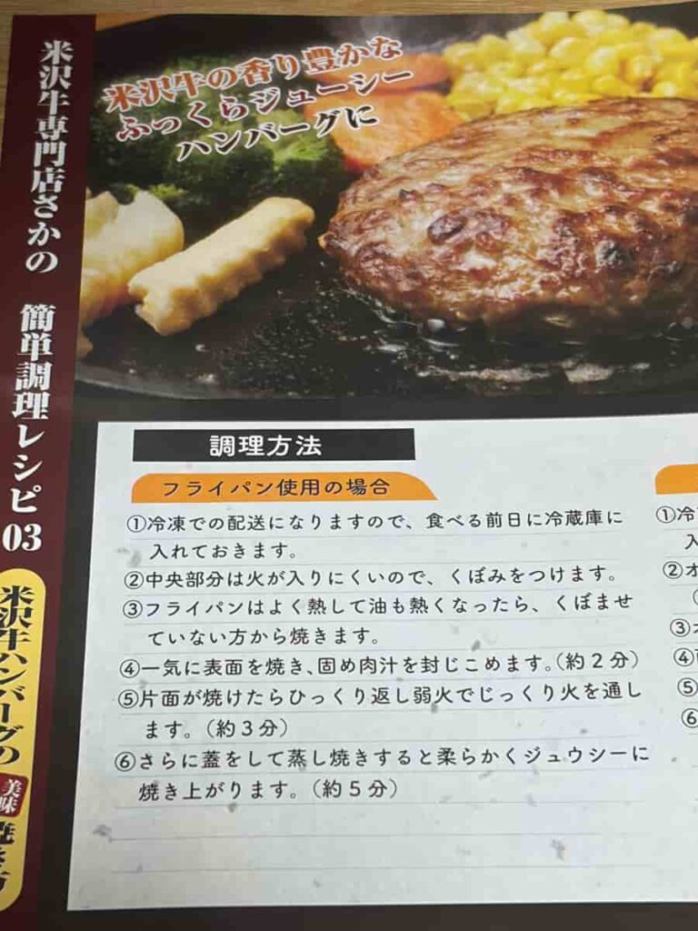 昨日、山形県米沢市(やまがたけん よねざわし)にある米沢牛専門店さかのさんの美味しい米沢牛100%ハンバーグを頂きました。
