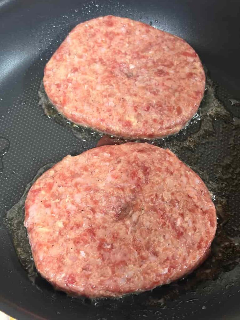 焼いている最中の米沢牛100%ハンバーグです。食欲をそそられます。