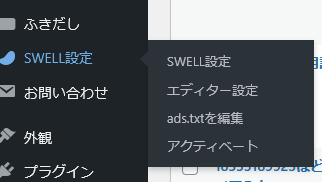 WordPressの画面左側にあるSWELL設定の中のSWELL設定を選ぶ。