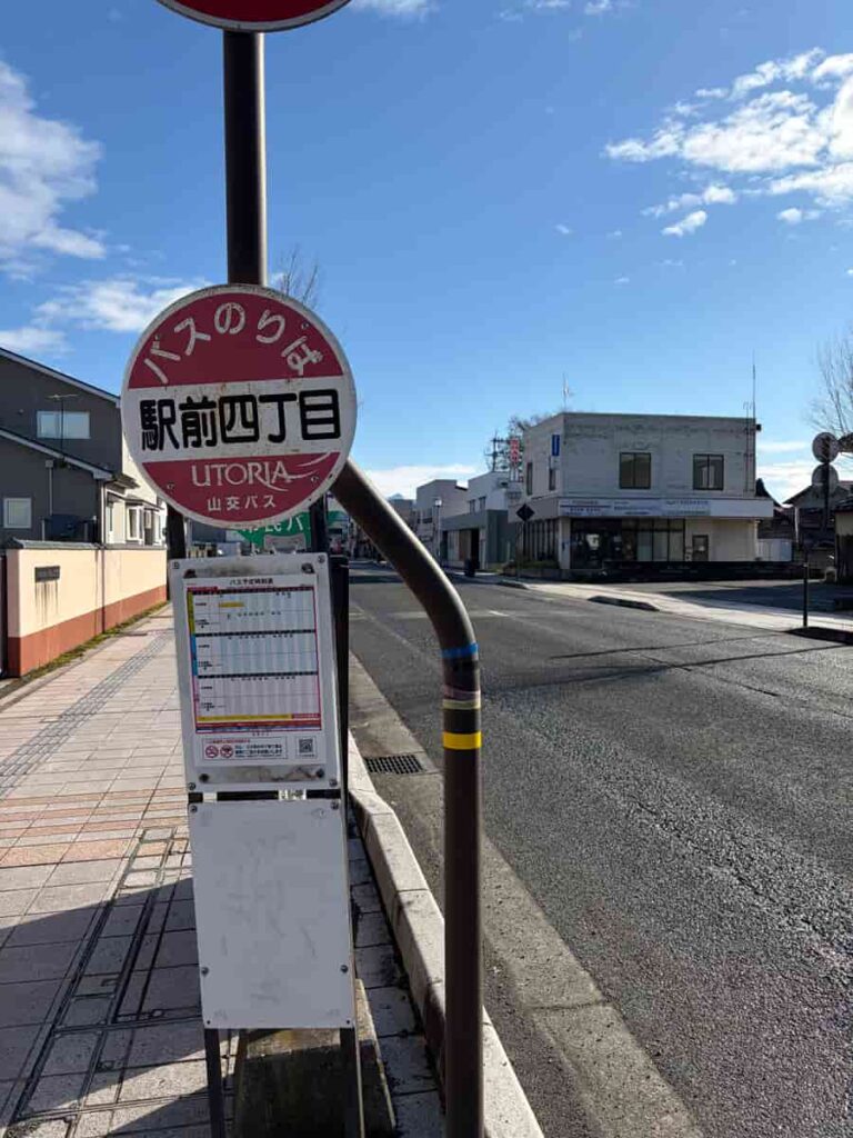 山形県米沢市の駅前四丁目のバスのりばからの景色です。